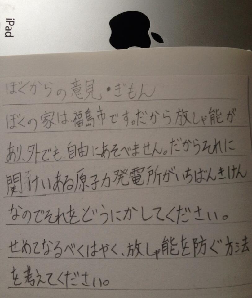ぼくの家は福島市です (小学生 男子) だから放しゃ能があり、外でも自由に遊べません