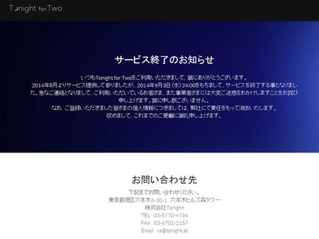 グリーの100%子会社のTonightは9月3日、ラブホテルに特化した当日予約アプリ「Tonight for Two」(iOS・Android)のサービスを終了した。8月に公開したばかりのアプリだが、1カ月足らずでサービス終了となった。