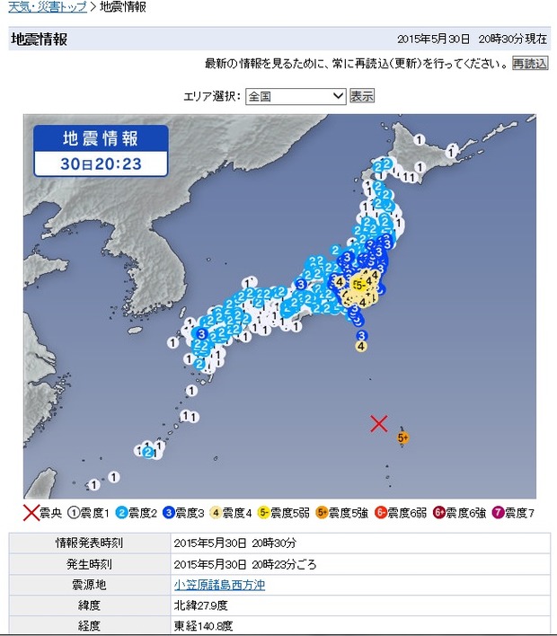 情報発表時刻 2015年5月30日 20時29分