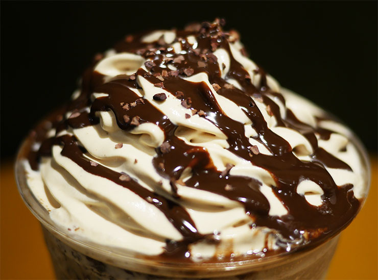 実際にチョコレートクランチフラペチーノのベンティサイズを購入して飲んでみたのだが、受け取った瞬間、ズッシリとくる重みが凄い!!