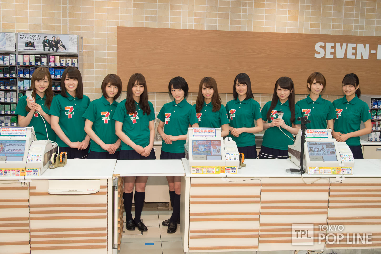 メンバーは1つのレジに2人ずつ、深川麻衣&橋本奈々未、秋元真夏&生田絵梨花、桜井玲香&生駒里奈、若月佑美&西野七瀬、白石麻衣&高山一実の5組に分かれ、セブン-イレブンの制服姿でレジに立ち、招待されたファン88人に対して、レジ打ちから商品を手渡すまで、店員さながらの接客を行った。