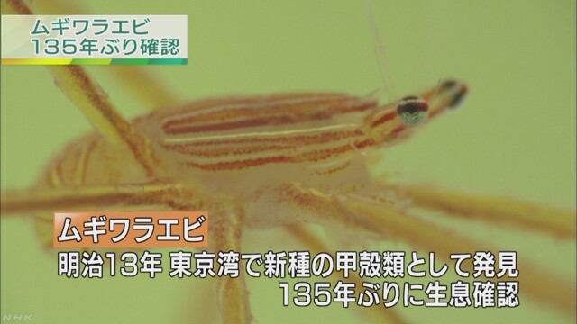 明治時代に東京湾で新種の甲殻類として発見されたものの、その後、湾内では見つかっていなかった「ムギワラエビ」が今も生息していることが、135年ぶりに正式に確認されました。