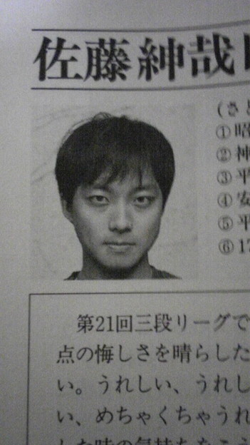 23日放送の「将棋フォーカス」(NHK教育)で、佐藤紳哉六段が、対局直前に被っていたカツラを外す珍事が起きた。