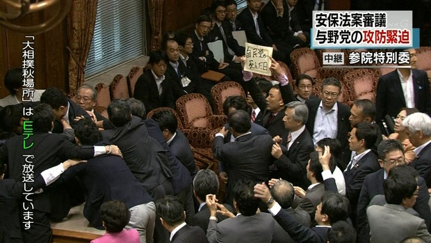 【大団円】安保関連法案、参院委員会でも奇跡の全員起立・全会一致で可決wwwwwwwwww