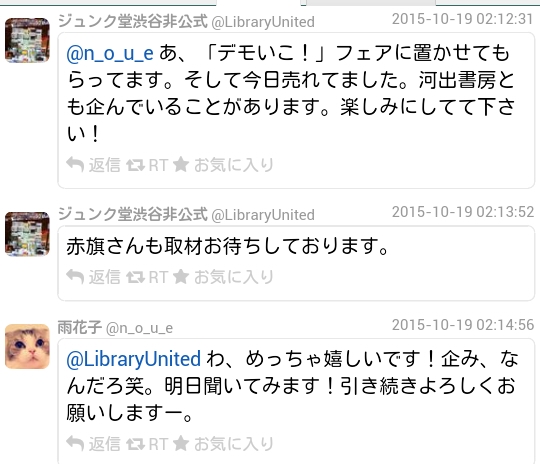 2015-10-20 【速報】ジュンク堂が覚醒 「民主主義って何だ?私たちは書店として闘います!一緒に闘いましょう!」
