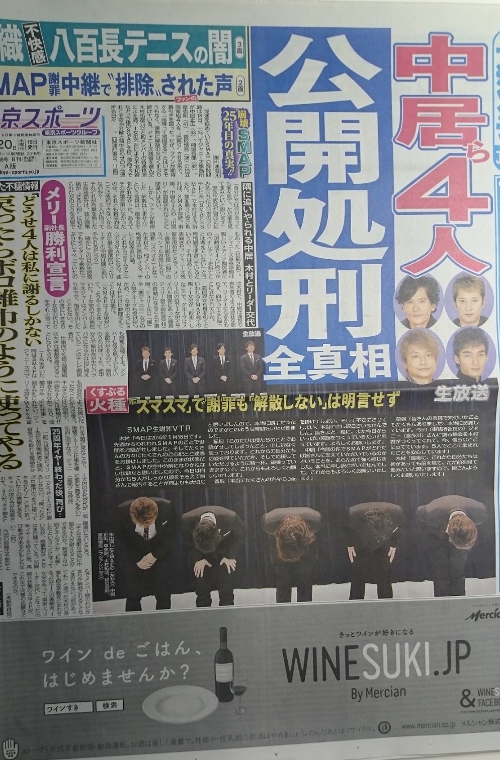 ¡ÖSMAP¡×²ò»¶¤Î´íµ¡¤Ï¡¢1·î18Æü¤Î¡ÖSMAP¡ßSMAP¡×ËÁƬ¤ÎÀ¸¼Õºá¤Ë¤è¤Ã¤Æ¡¢¤Ò¤È¤Þ¤º¤Î¼ý«¤ò¤ß¤»¤¿¡£¥¸¥ã¥Ë¡¼¥º»ö̳½ê¤Î¥á¥ê¡¼´î¿ÀîÉû¼ÒĹ¡¢¤½¤·¤ÆÈÓÅç»°Ãҥޥͥ¸¥á¥ó¥È¼¼Ä¹¤ÎÂÐΩ¤¬È¯Ã¼¤È¤Ê¤Ã¤¿¤³¤ÎÁûư¡£¡Ö½µ´©¿·Ä¬¡×1·î21ÆüȯÇ乿¤¬¡¢Åö»ö¼Ô¤Ç¤¢¤ë¥á¥ê¡¼Éû¼ÒĹ¤ÎÆÈÀꥤ¥ó¥¿¥Ó¥å¡¼¤ò·ÇºÜ¤·¤Æ¤¤¤ë¡£