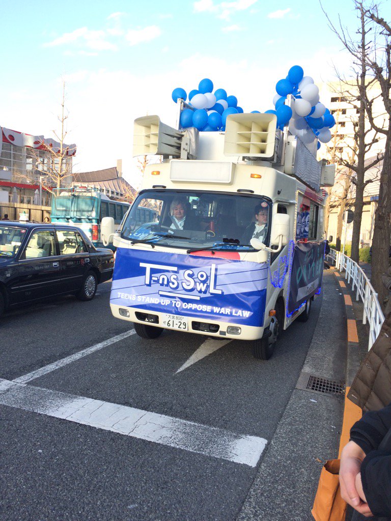 高校生版SEALDsことT-nsSOWL、今日の全国一斉高校生デモでなぜか共産党の街宣車を使用