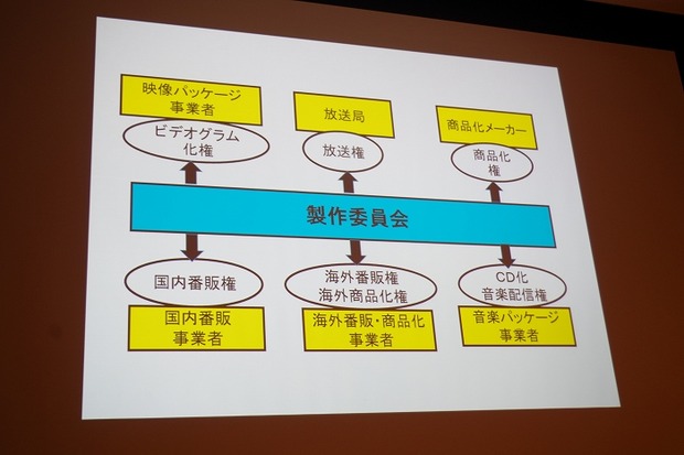 アニメは権利の塊で、その権利の対象はほとんど独占的に許諾される。この権利を使ってビジネスを行いたい事業者の方々が出資することで製作委員会が形成される。