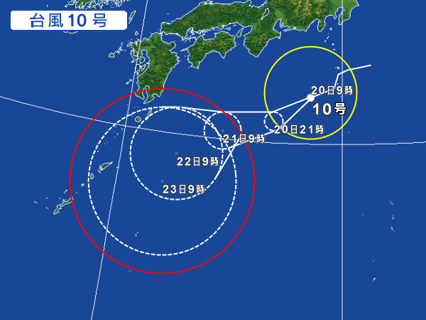 台風10号、南で力を蓄え東京に向かうもよう