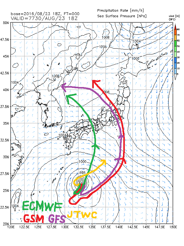 2016-08-20 【お前らかよ】 日本に上陸すると見られた台風10号 地球の自転も偏西風も無視し意味不明な動きにw