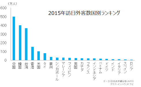 2015年国別訪日客数
