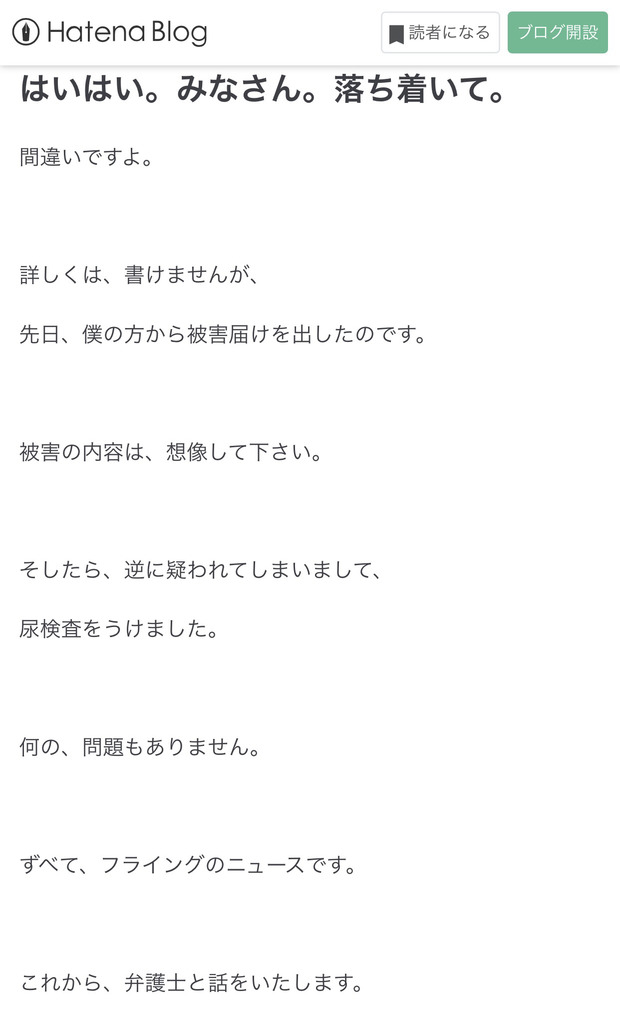 今日(28日)14時頃に逮捕状請求のニュース、15時頃にブログではいはいみなさん落ち着いて