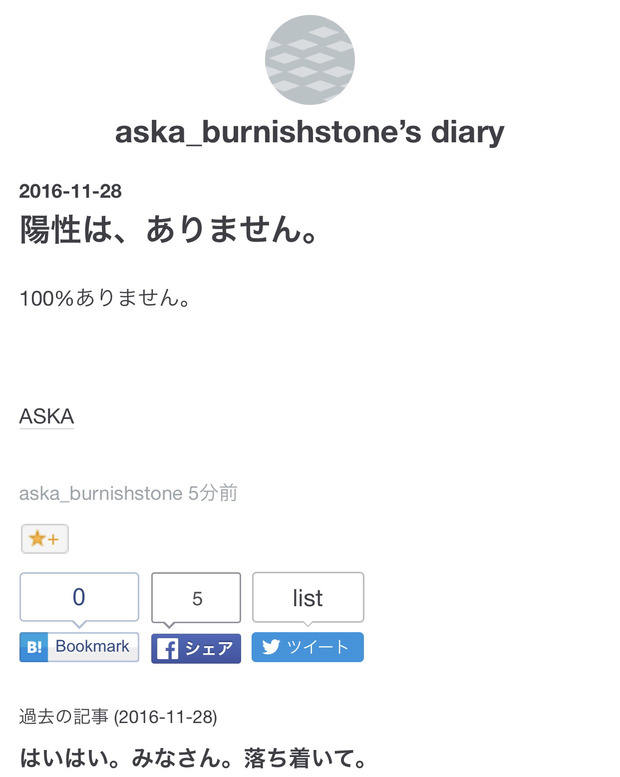 逮捕されたはずのASKAがブログ更新 「はいはい。みなさん。落ち着いて。間違いですよ」