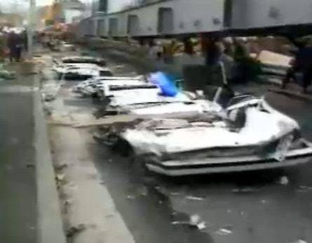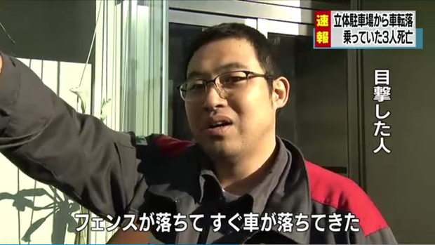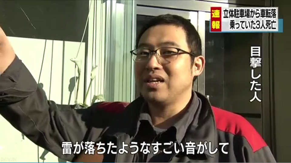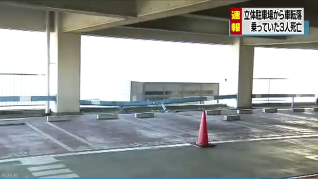 【画像】 立体駐車場から車が転落 ぺちゃんこに 男女3人死亡