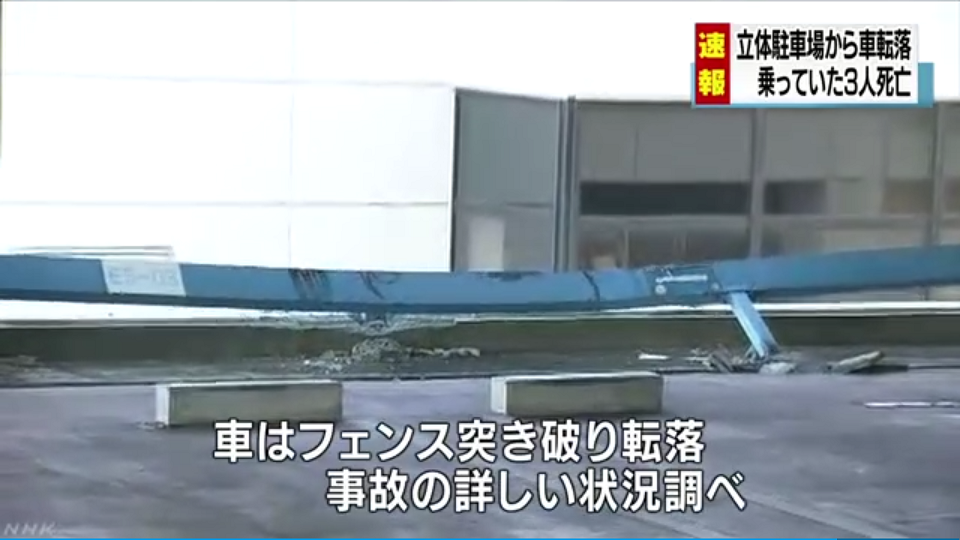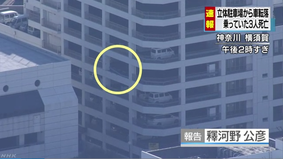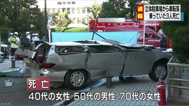 立体駐車場から車転落 40〜70代男女3人死亡 横須賀