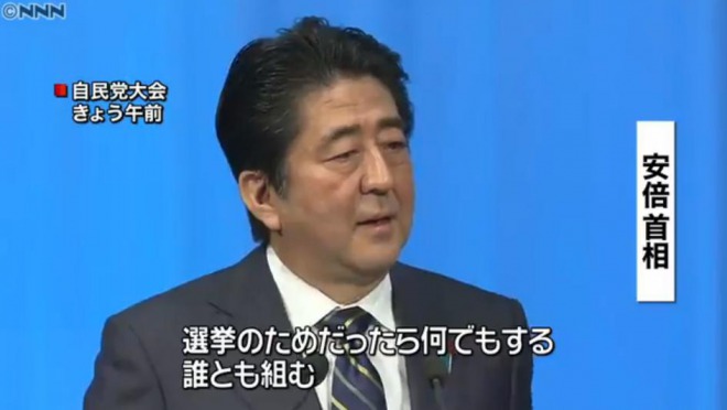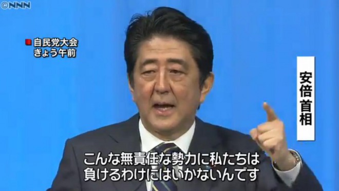 安倍首相 「選挙のためならなんでもする、誰とも組む、こんな無責任な勢力に私たちは負けるわけにはいかないんです。」