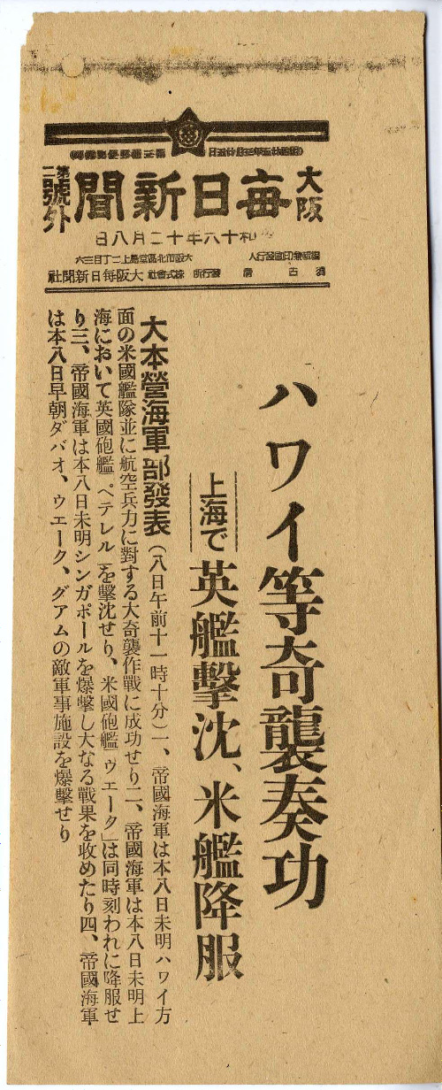 3,昭和16年12月8日付 大阪毎日新聞号外