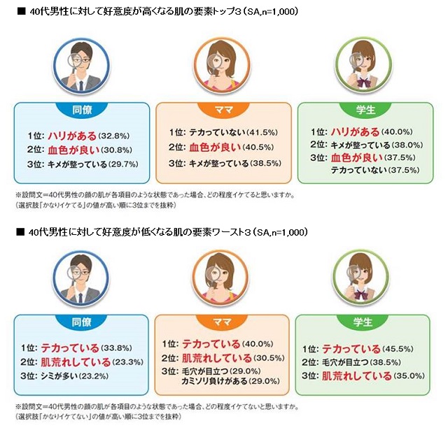 マンダムは10月18日、40代男性の身だしなみに関する調査結果を発表した。調査は7月、20〜49歳の働く男女(以下、同僚)600名、25〜44歳の子どものいる既婚女性(以下、ママ)200名、高校生〜大学院生の男女(以下、学生)200名を対象に、インターネットで行われた。