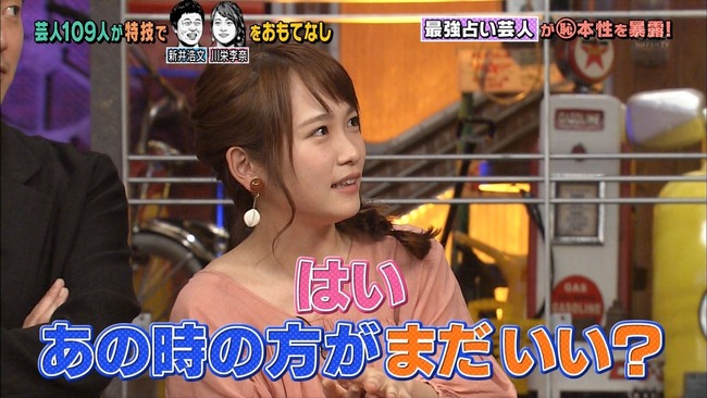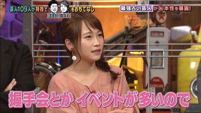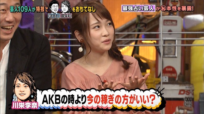 スタジオゲストの指原は、このVTRを見て「川栄は私の後輩なんですけど、CMとかで見てて1人で売れてふざけんなよって思ってたんですけど」と打ち明けて笑いを誘ってから、「苦労して彼女の今があるんだなと、改めて思いましたね」としみじみと語った。