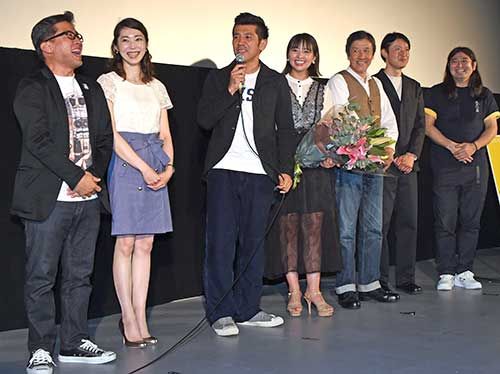 ガレッジセールのゴリさんが本名の照屋年之で監督した粟国島の洗骨をテーマに製作した映画「洗骨」では会場に多くの観客が駆け付けた。上映後、照屋監督と出演した奥田瑛二さんや筒井道隆さん、水崎綾女さん、鈴木Q太郎さん、前原エリさん、山城智二さんが舞台あいさつした。