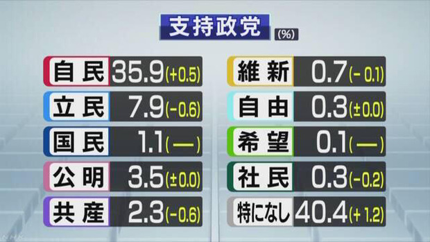 【NHK世論調査】政党支持率 モリカケ&長期サボり効果で野党の支持率が軒並み下落 自民は上昇