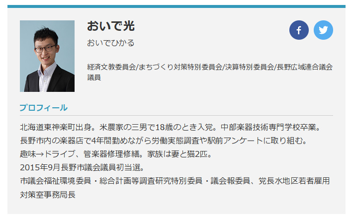 自転車のサドルに体液を出した共産党長野市議、生出 光(28)容疑者を逮捕。