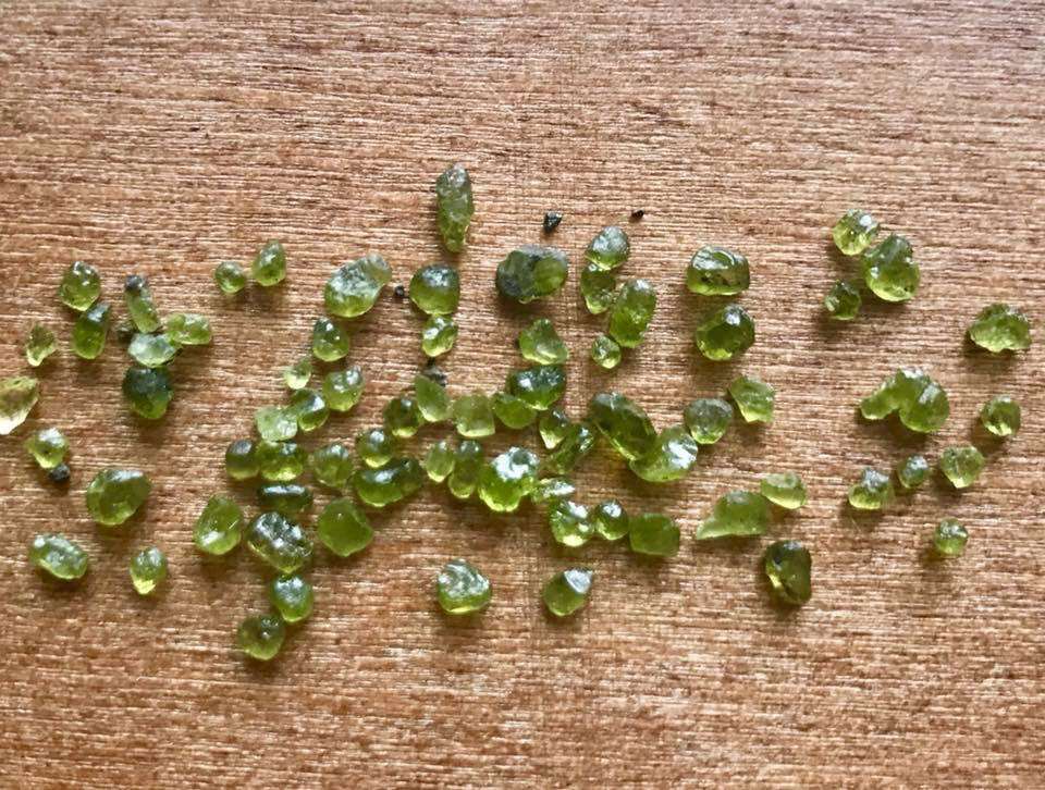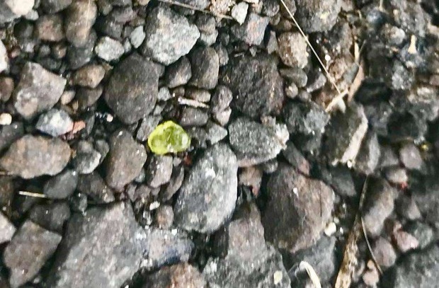 カンラン石は小つぶで美しい火山性の鉱物。住民は道路やビーチに落ちているカンラン石を拾い、その写真をSNSで紹介している。