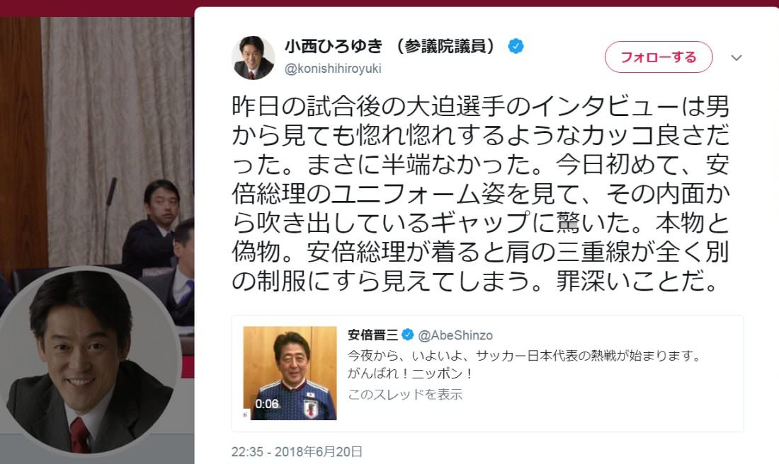 — 小西ひろゆき (参議院議員) (@konishihiroyuki) 2018年6月30日