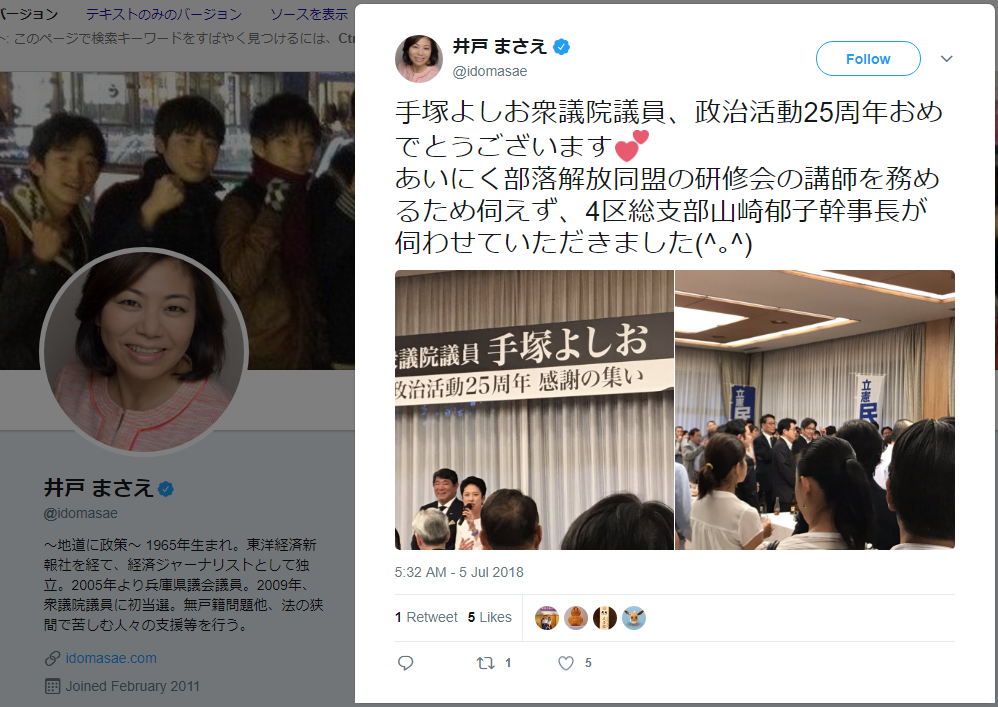 ついでに7日に立憲民主党・蓮舫と杉尾がトークショー、チャックマン初鹿と共産党議員が反原発デモ、8日は事前運動をやっていた共産党議員がいたことは伝えないの? pic.twitter.com/42B49xd6Ph