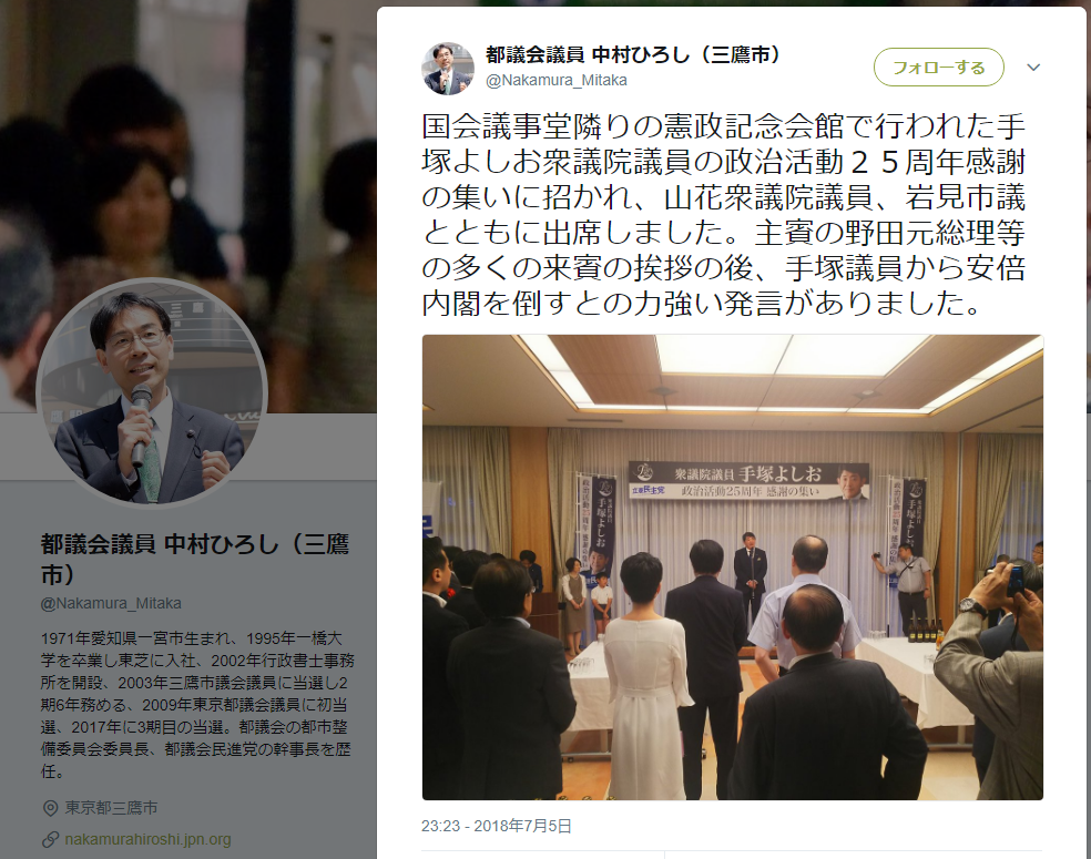 7月5日の夜、自民党の懇親会と同時期に立憲民主党はパーティーを行っていた。