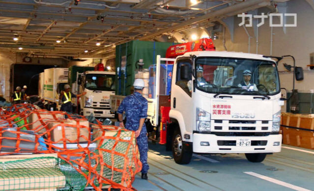 動画を見ると自衛隊トラックはバラ積み品を積み込んでるけどどうなんだろ