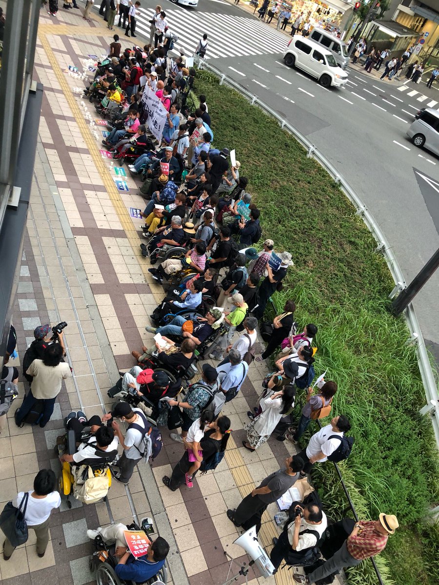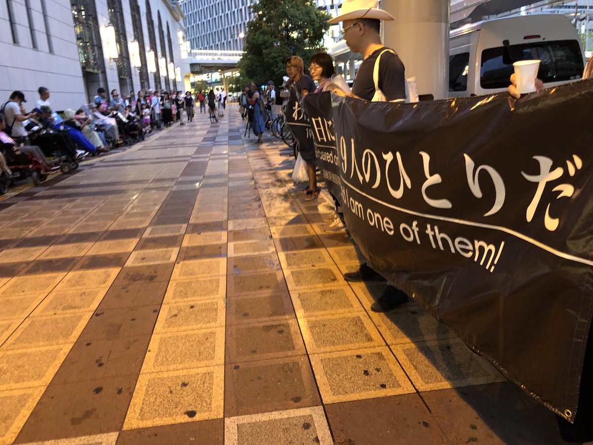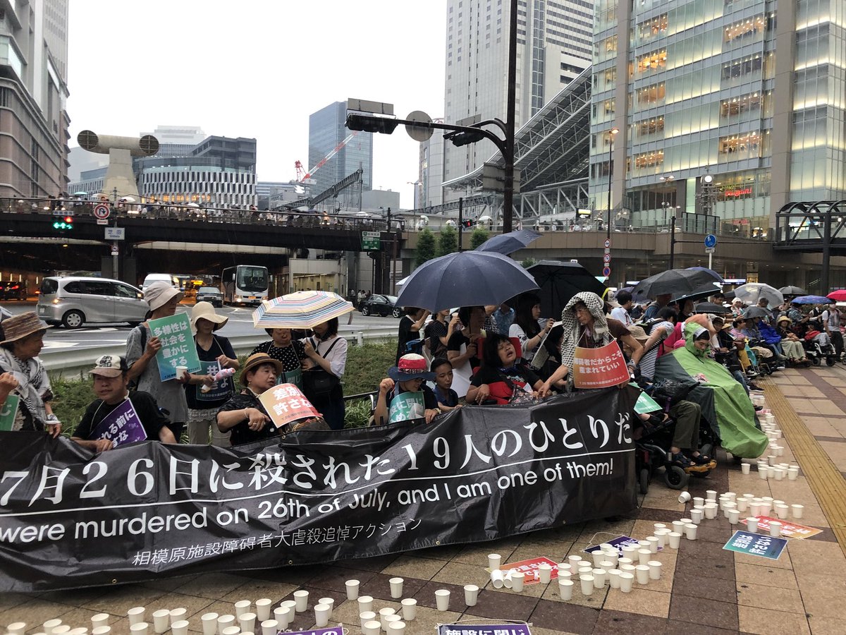 相模原施設障碍者大虐殺追悼街宣の際、大雨で中断し多くの障碍者を含む