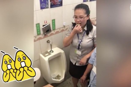 中国の企業がトイレでおにぎりを食べ清潔さをアピール 男子便器でおにぎりを転がしそれを食べる