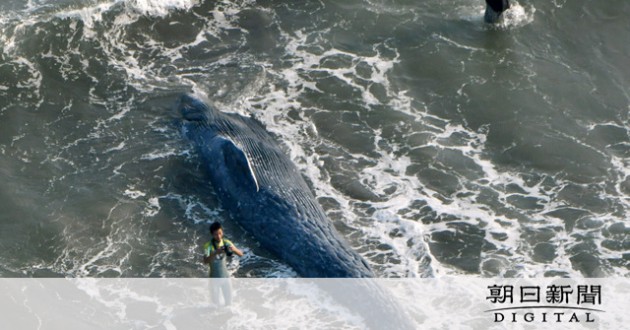 鎌倉の海岸に10メートルのクジラが打ち上げられる