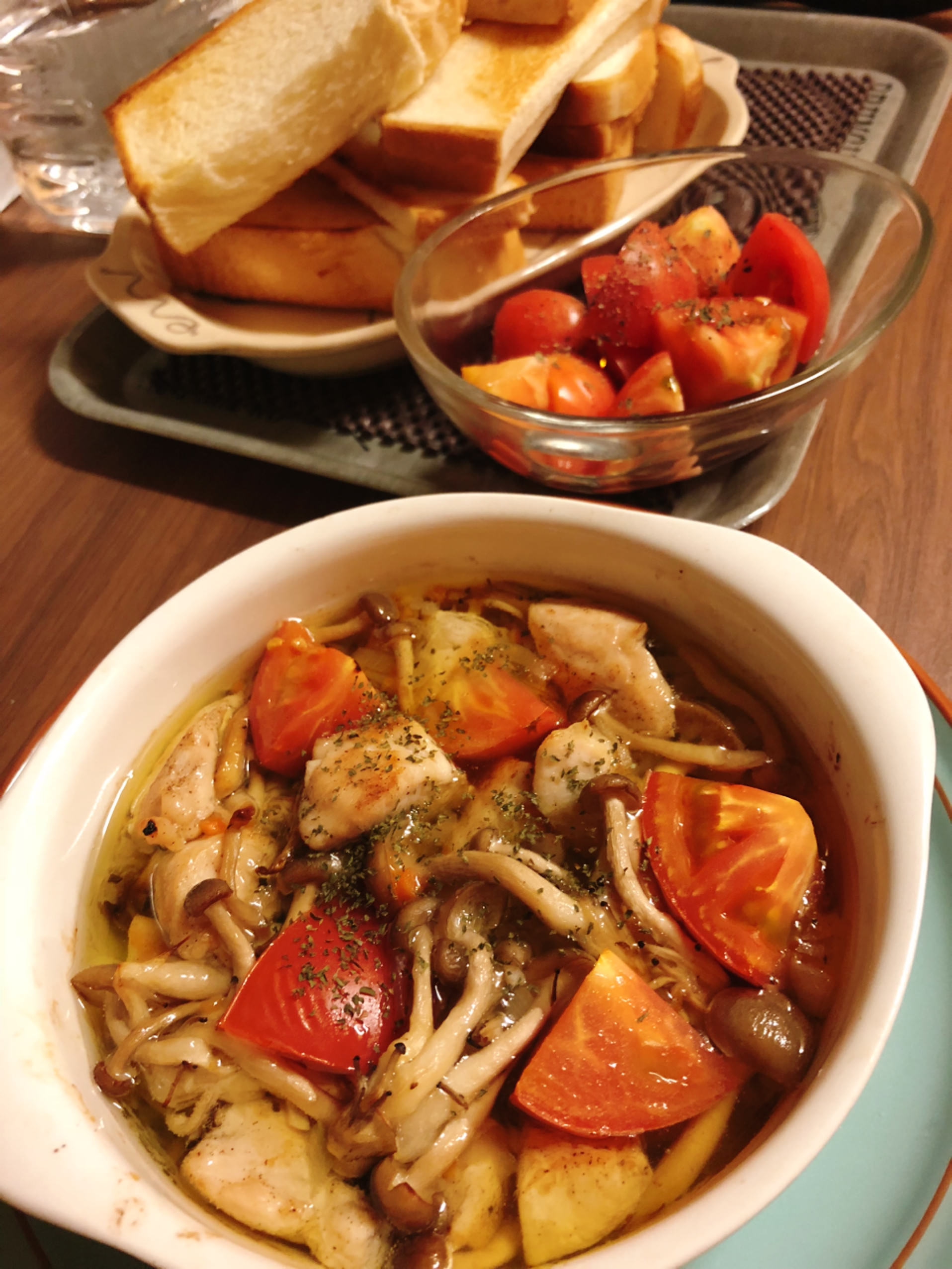 (´・ω・`)キノコとトマトと鶏肉ならいくら食っても太らなそうだな