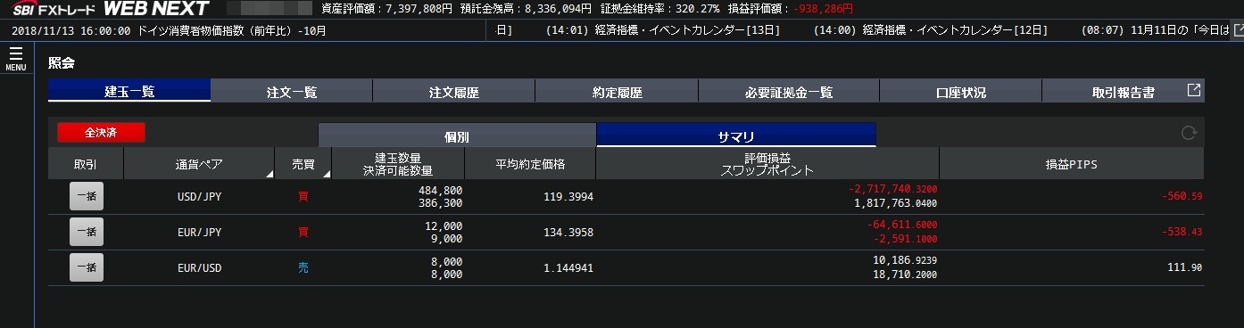 三日連続的にロスカットにな り資金が完全に無くなりました