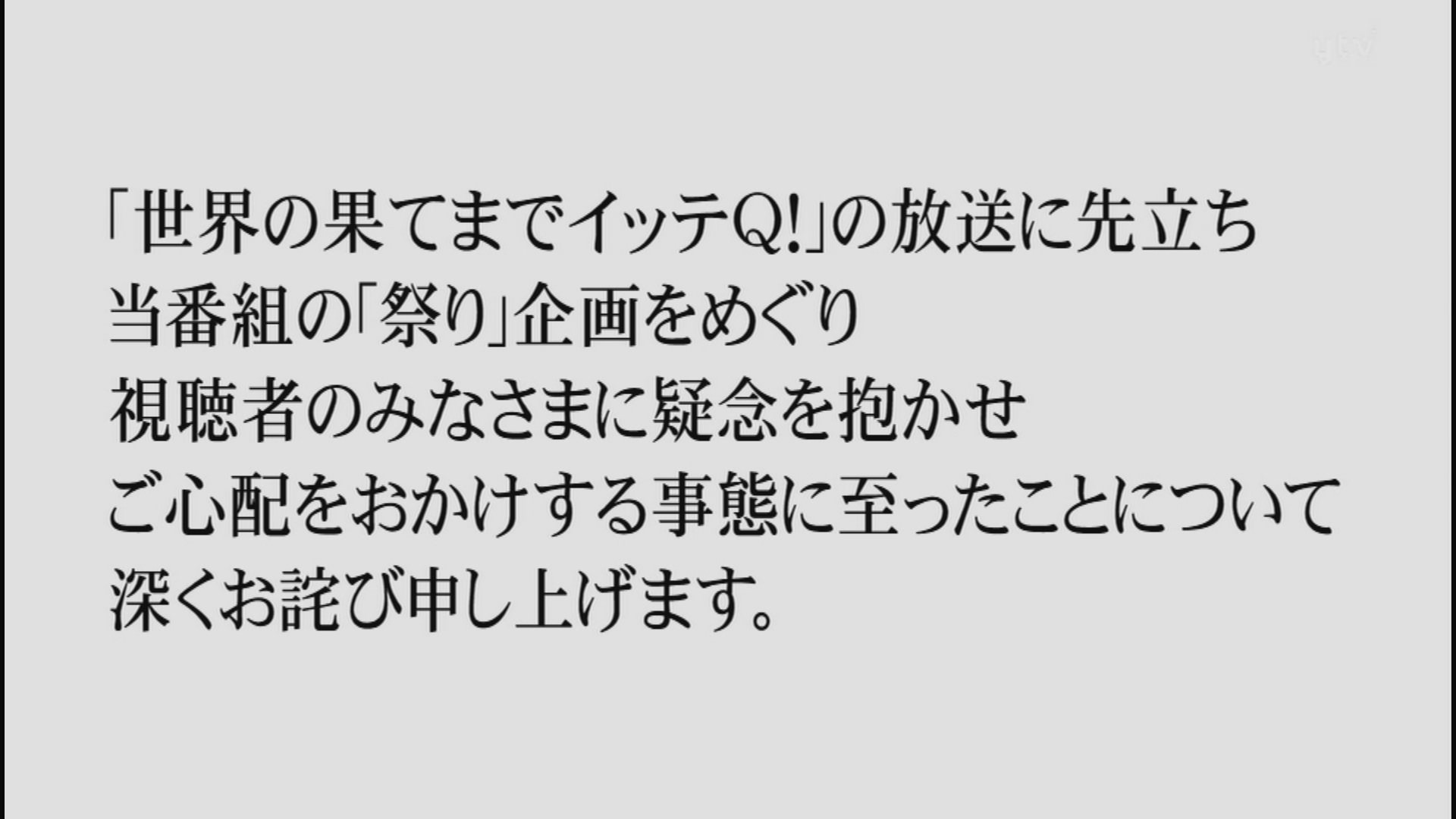 世界の果てまでイッテQ!、番組冒頭でお詫びキタ━━━━(゚∀゚)━━━━!!