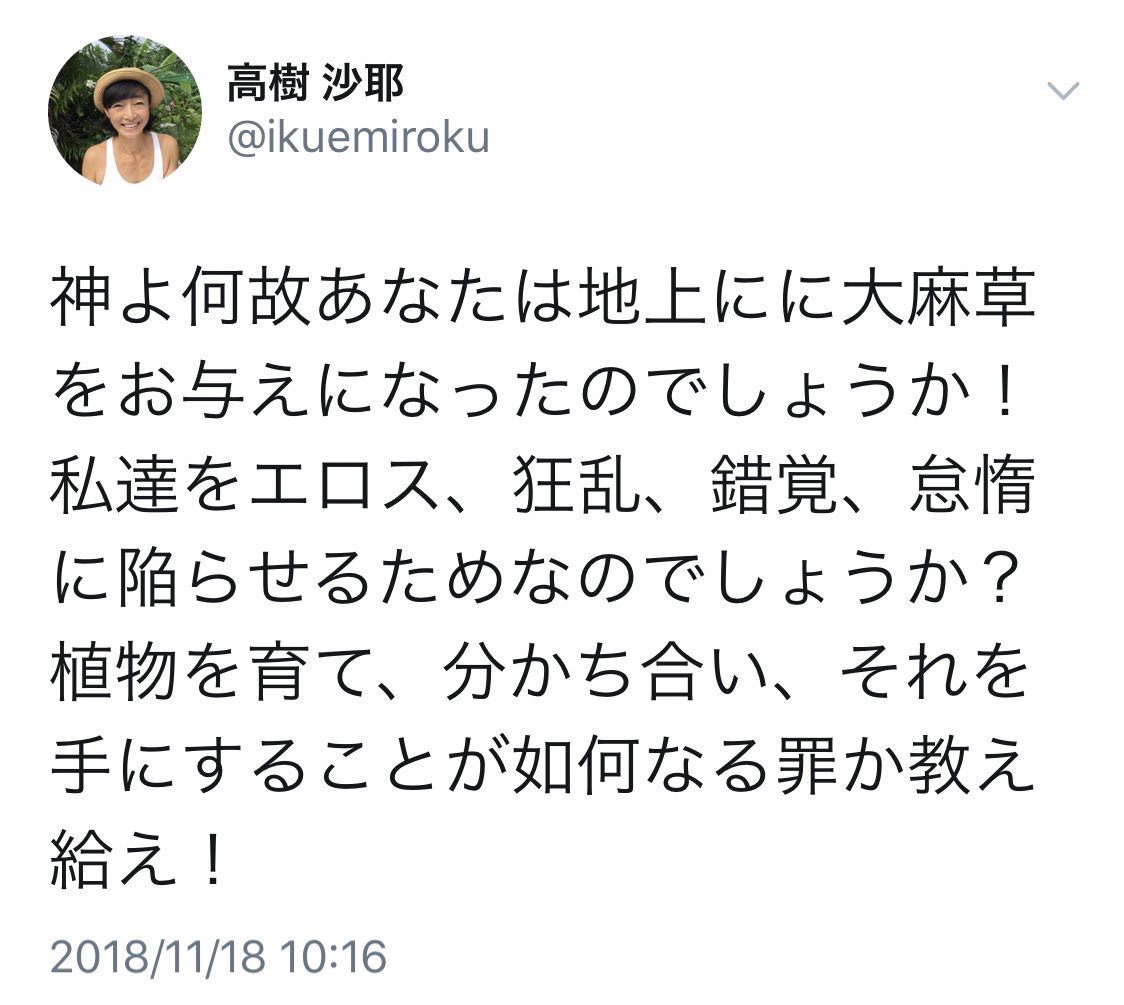 【草】高樹沙耶さんの大麻めぐるツイートに反響「神よ何故あなたは」【草】