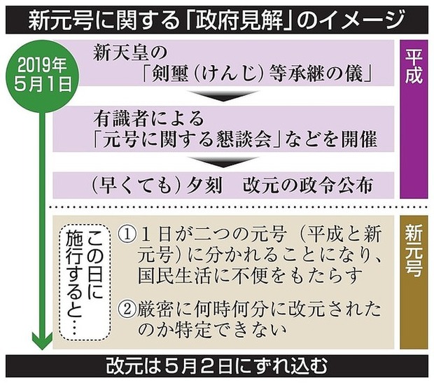 新天皇公布なら改元は5月2日 政府見解、保守派に伝達