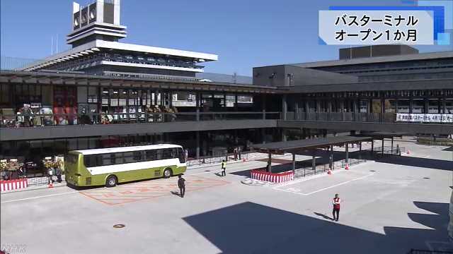 県がおよそ45億円を投じて整備した観光バス向けのバスターミナルのオープンから1か月がたちました。しかし、ターミナルを使わず、近くの路上で客を乗り降りさせるバスもあり、県は、ターミナルの利用を呼びかけるとしています。
