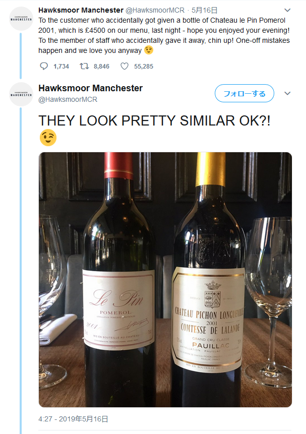スタッフが63万円のワインを間違えて客に提供 英国のレストラン 店「元気出せ!ミスは起こるさ」
