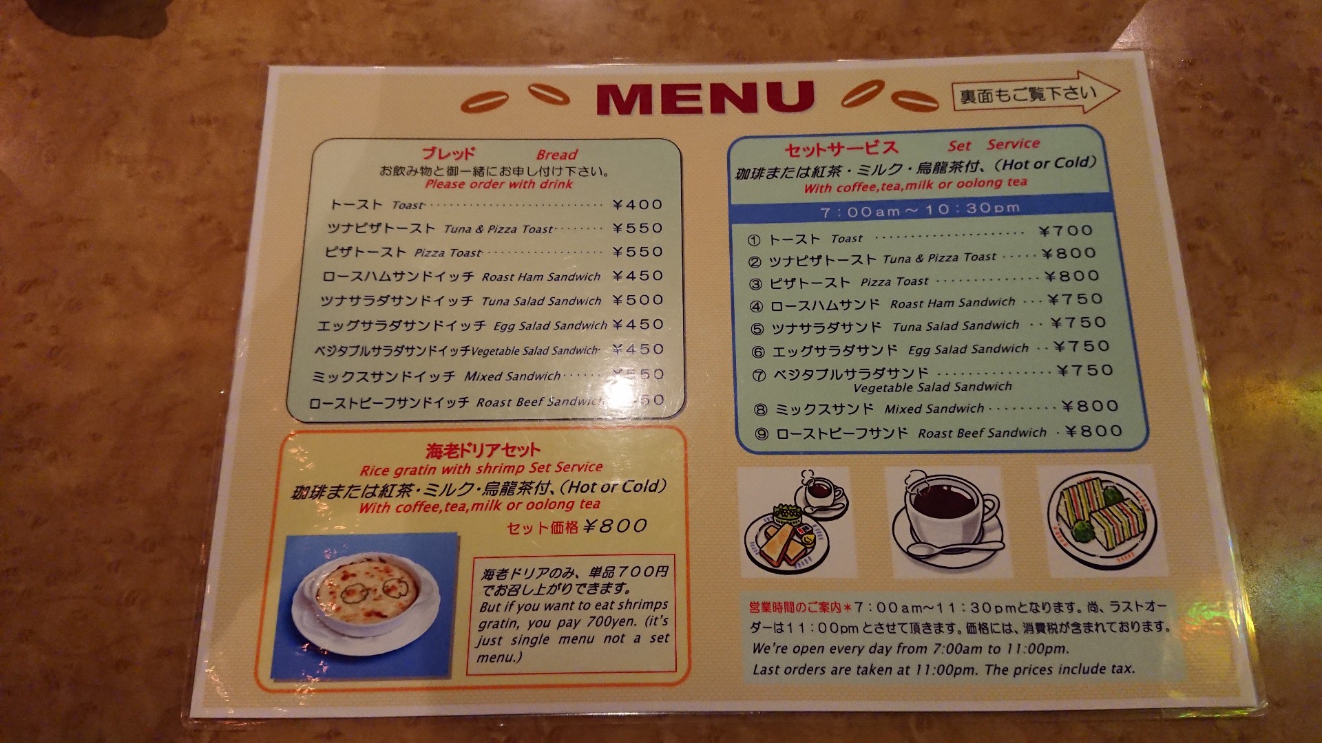 営業時間AM7:00からPM11:30って書いてない?