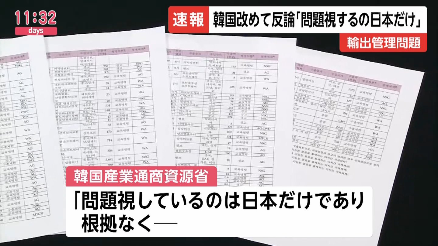 韓国の産業通商資源省は、11日に記者会見し、韓国から軍事転用可能な物資が流出するのを防ぐための輸出管理体制について、「問題視しているのは日本だけだ」と主張し、非難をやめ、証拠を示すようあらためて求めた。