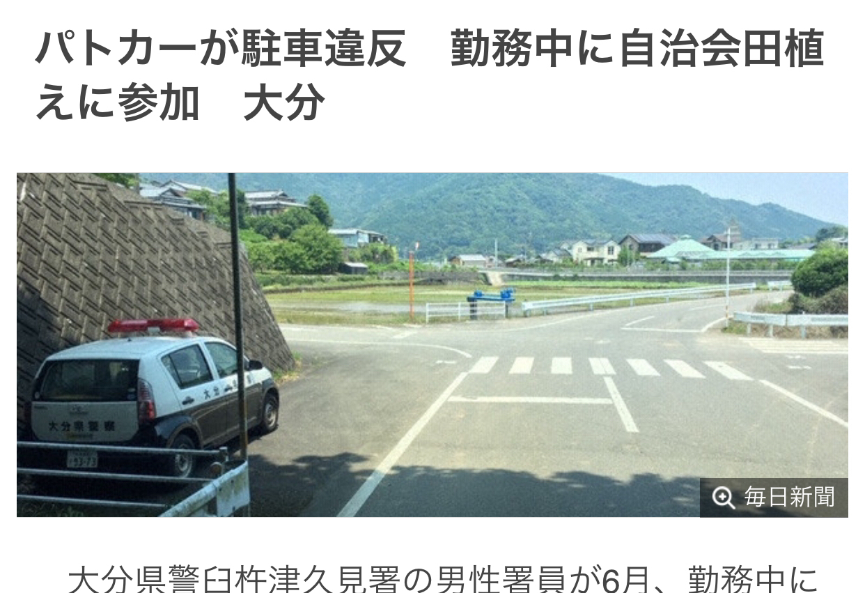 警官「自治会の田植え行事手伝うよ」→チクリ魔「いやぁ!パトカーが違法駐車してるううう!」