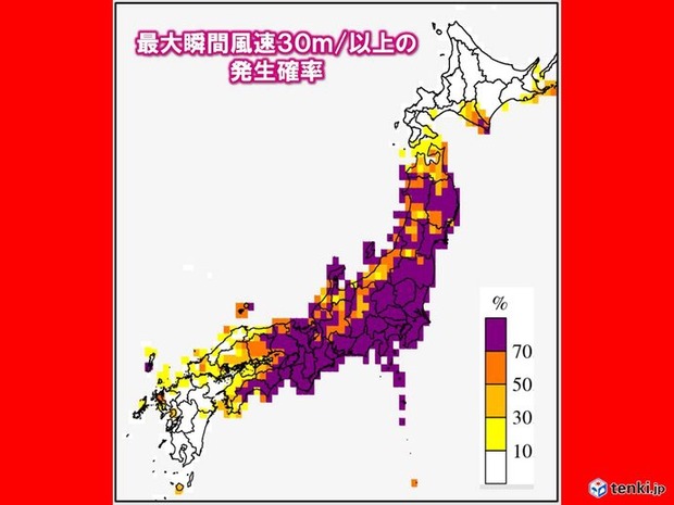 瞬間最大風速40m/sを越えると被害が出てくる。