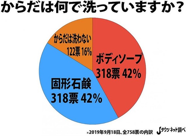 そこでJタウンネットでは2019年4月11日から9月18日まで、「からだは何で洗っていますか?」と題して読者アンケートを行った(総投票数758票)。はたして、その結果は――。