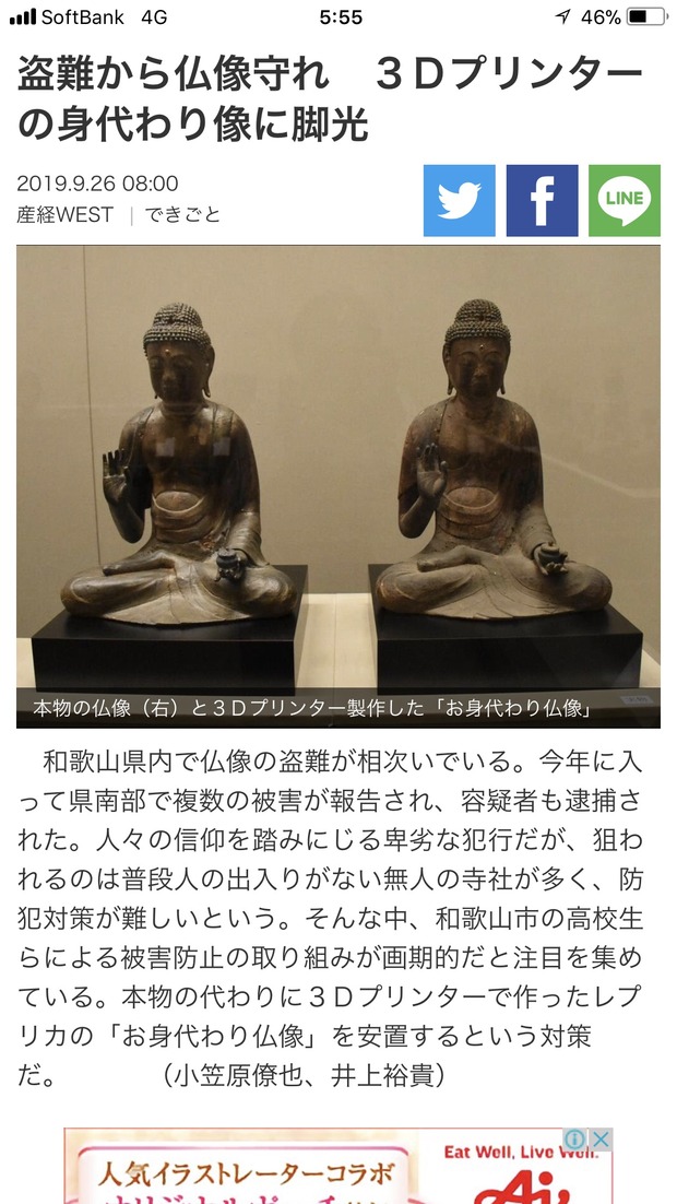 盗難から仏像守れ 3Dプリンターの身代わり像に脚光