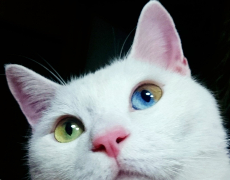 瞳が赤と青の白猫ならみたことあるな