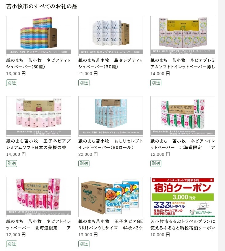 こんなのも「苫小牧の返礼品にトイレットペーパーがあるぞ、急げ!」みたいなツイートで拡散されるの?(´・ω・`)
