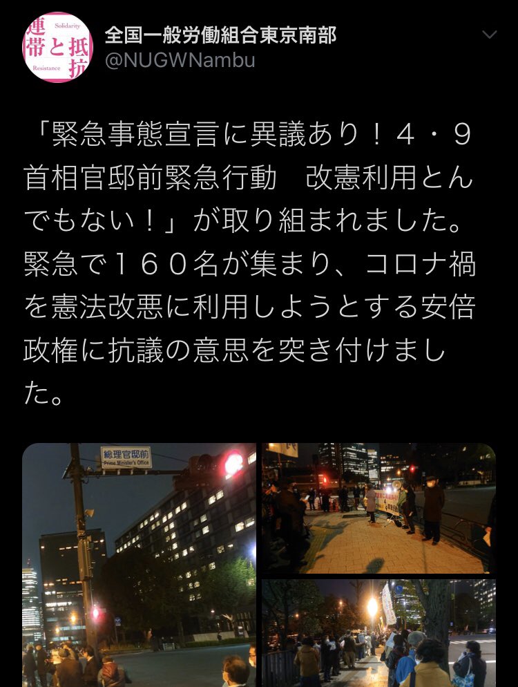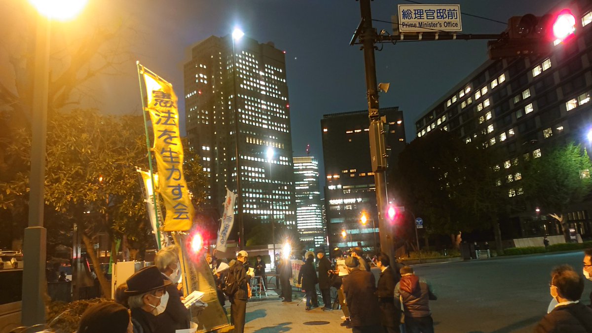 緊急事態宣言を「改憲に利用するな」市民ら160人が首相官邸前で抗議集会